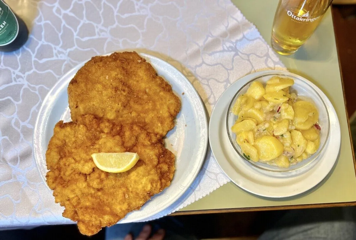 Menu jest proste i skupia się głównie na sznyclach. Klasyczny Wiener Schnitzel kosztuje około 9,80 euro, a porcja jest tak duża, że często wystaje poza talerz. Oprócz sznycli, można tu zamówić również inne austriackie specjały, takie jak gulasz czy Kaiserschmarrn (rodzaj naleśnika).